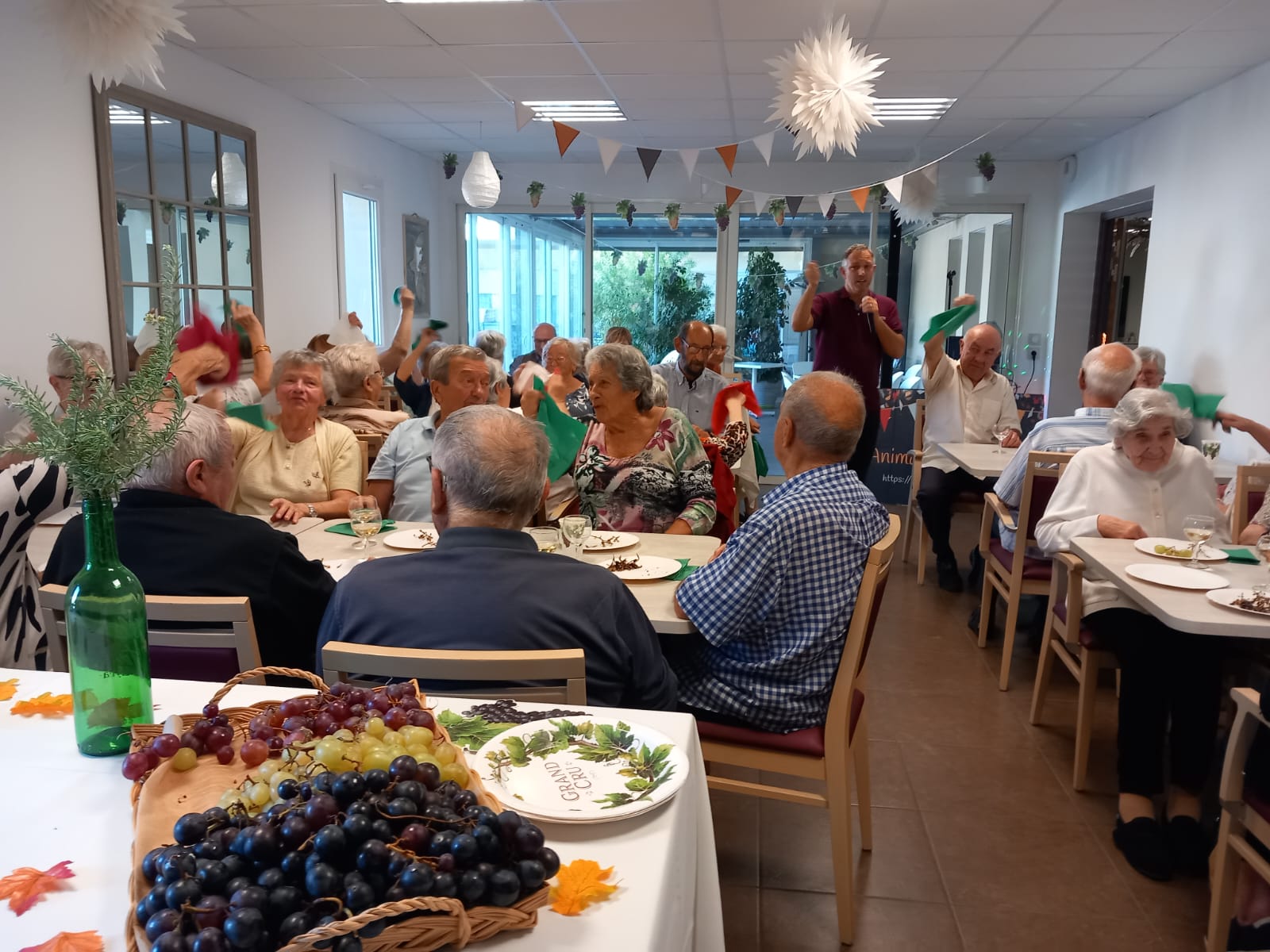 Au programme, un chanteur est venu enchanter l’après-midi avec un répertoire entraînant qui a fait chanter et taper des mains les participants. Entre deux refrains, chacun a pu déguster les plaisirs de saison : du raisin sucré, du fromage affiné, du saucisson savoureux, sans oublier un verre de vin qui a réchauffé les cœurs.